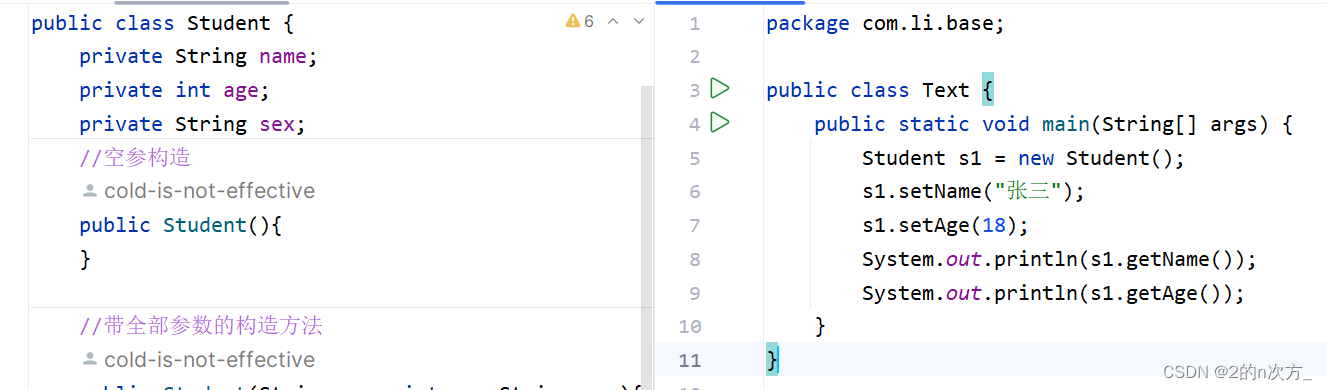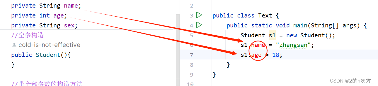 可以明显的看到,当私有化成员变量的时候,在Text类中再访问这些变量就会报错,那么怎么访问呢 针对每一个私有化成员变量都需要写对应的get和set方法