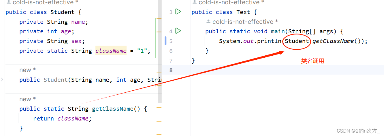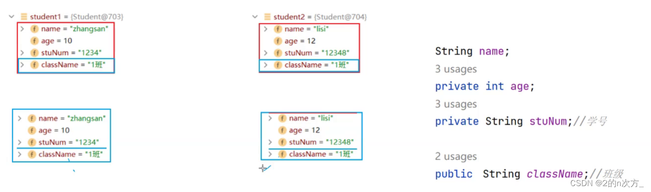 可以看出,通过static修饰的成员变量被单独提出来,已经不属于对象了,并且存放在方法区当中,而对象是存在于堆内存中的 那么既然不属于对象了,怎么去访问呢