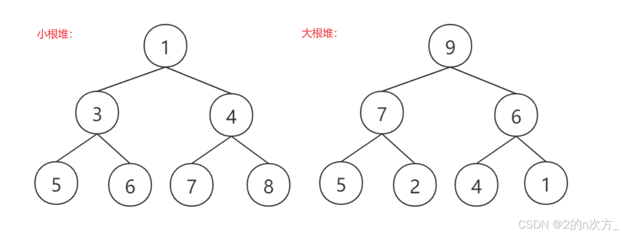 大根堆:每个节点的值都大于或等于其子节点的值,也就是根节点是树中的最大值。 小根堆:每个节点的值都小于或等于其子节点的值,也就是根节点包含树中的最小值。