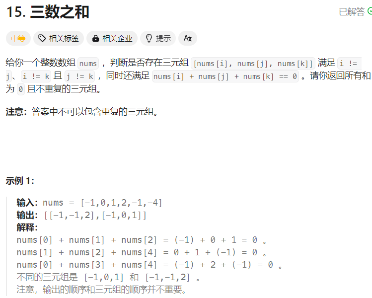思路:先进行排序,然后确定一个数,剩下的两个数按照两数之和的方法解决