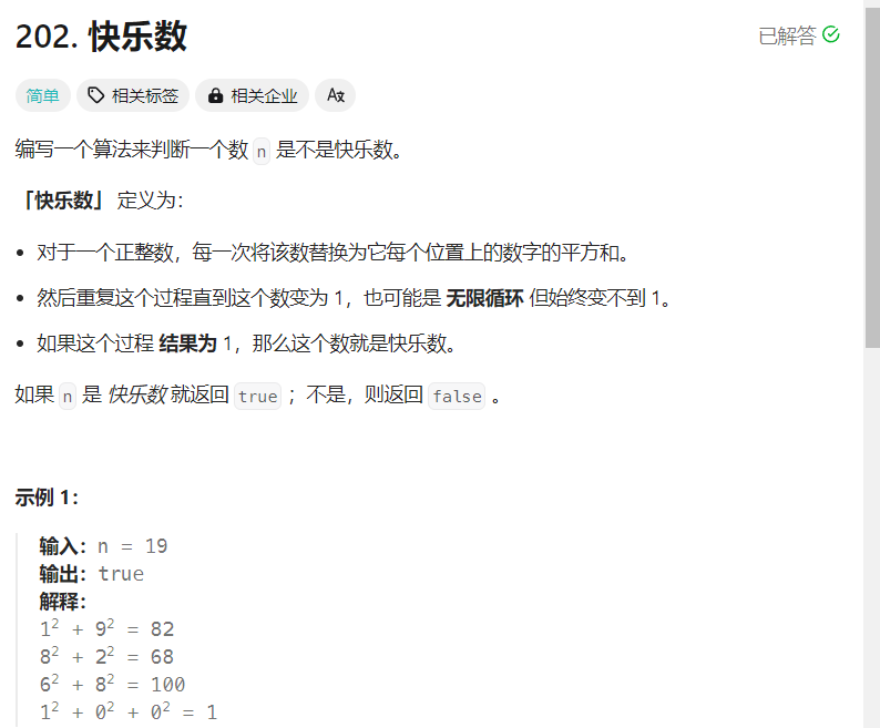 既然快乐数一定可以成环,所以只需要判断环里面的数字是否是1即可