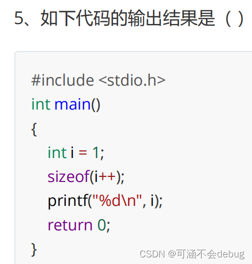 一般表达式的运算是在运行时执行的,而 sizeof 是一个编译阶段就执行的运算符,在其内的任何运算 都不执行 ,只推测出其中表达式结果的类型求其大小,故前后i 的值不变。