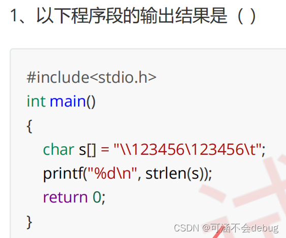 \\表示一个 '\' 字符,\123表示一个八进制数,\t 表示水平制表。所以最后的结果是12.