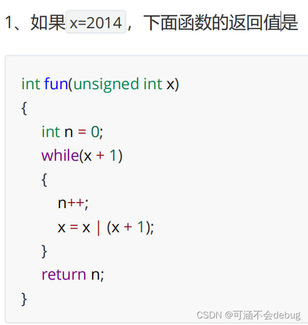 x=x|(x+1);的作用是每次循环把x的二进制中从右往左数的最后一位0变成1 ,直到变成