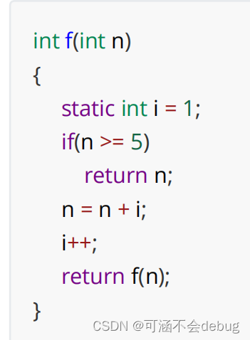 不清楚静态局部变量的意义。静态局部变量存储在静态存储区,当静态局部变量离开作用域后,并没有被销毁,被修饰变量的值没有改变,比如本题的i变量的值不会改变,会一直++。