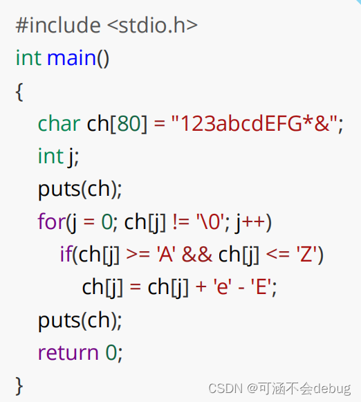 一个字母对应的大写和小写之间的 ASCII 码值相差 32 ,而且 小写的ASCII码值大于大写 的。所以题中 'e' 和 'E' 之间的 ASCII 码值相差 32( ch[j]+'e'-'E' 相当于 ch[j]+32 )。可以直接+32