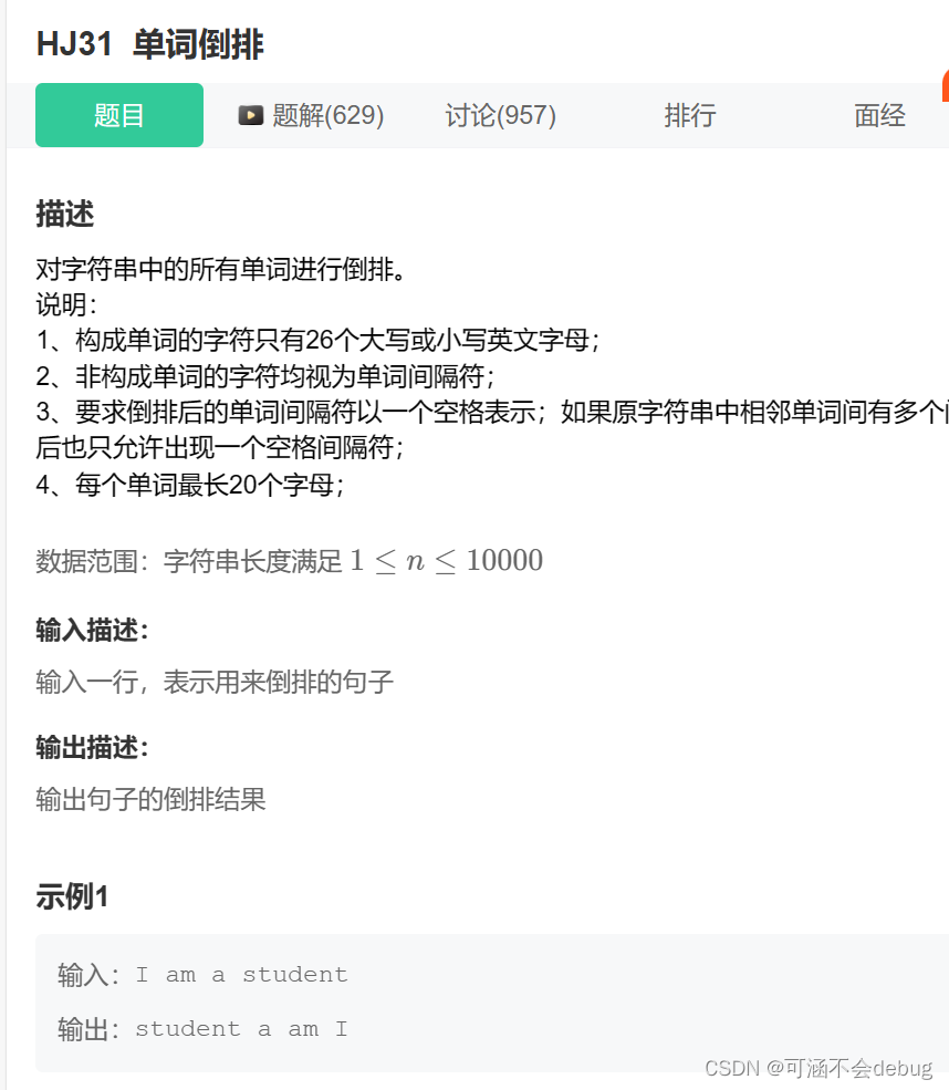 定义一个字符指针数组,用于保存每个单词的 起始字符地址 ,接下来将 非字母字符全部替换成为字符串结尾标志 ,则单词字符字母遇到结尾就结束了,相当于把一个字符串以非字母字符进行切割成为了多个字符串,最终对字符指针数组进行逆序打印每个单词即可。