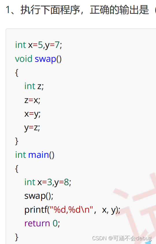首先在这个程序中有两个x,y,一个是在主函数中定义的局部变量,另一个是全局变量。