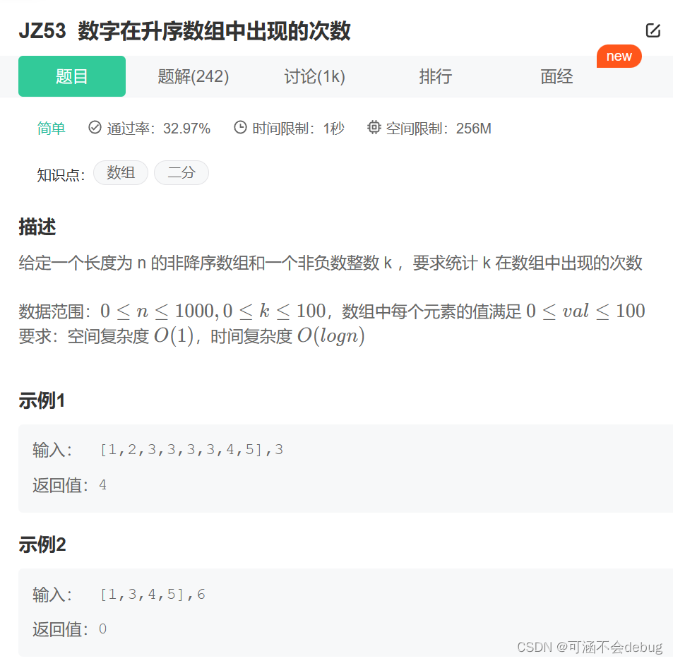 数字在升序数组中出现的次数_牛客题霸_牛客网 (nowcoder.com)
