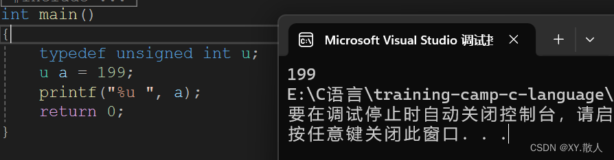它的作用就是重命名,比如你觉得unsigned int太难写了,你直接重命名为u是可以的,像这样。