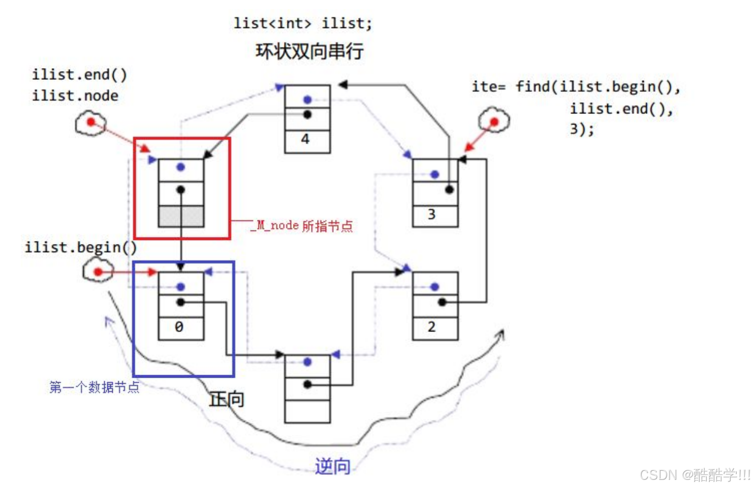 此处, 大家可暂时将迭代器理解成一个指针, 该指针指向list的某个结点, 深度剖析模拟实现时我们会再次进行深度讲解