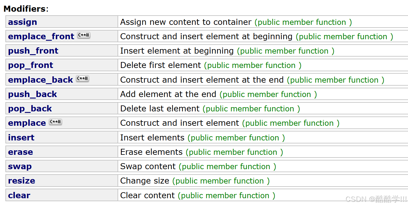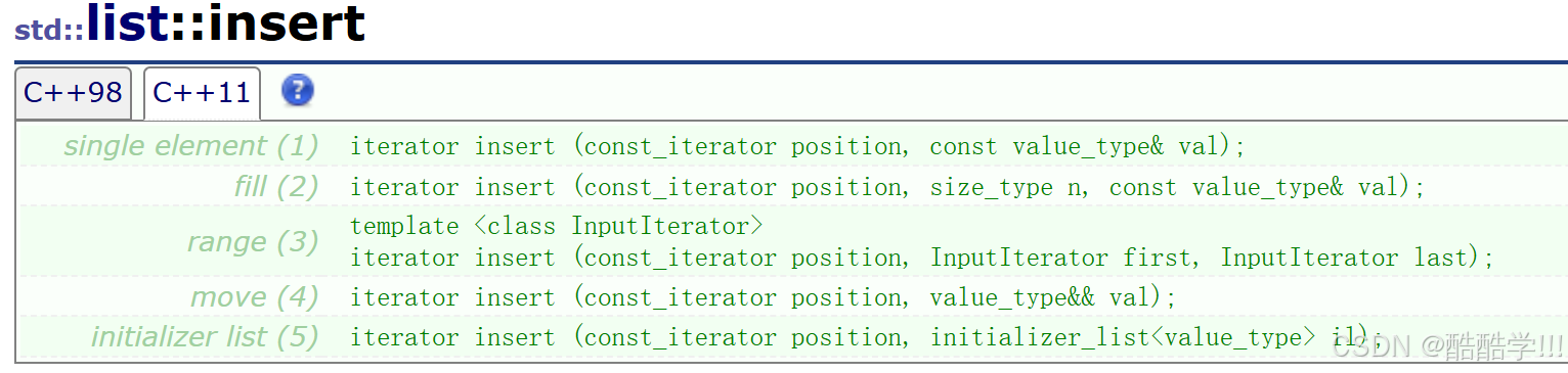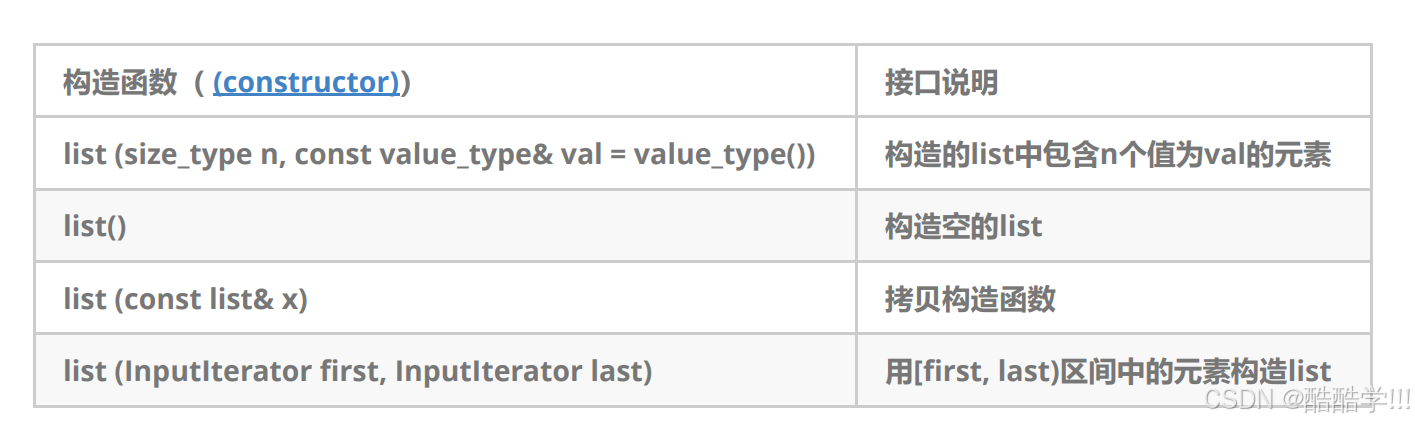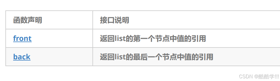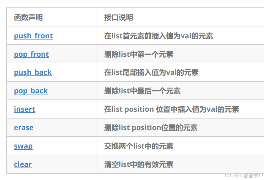 list的接口比较多, 此处类似, 只需要掌握如何正确的使用, 然后再去深入研究背后的原理, 以达到拓展的能力, 以下为list中一些常见的重要接口.