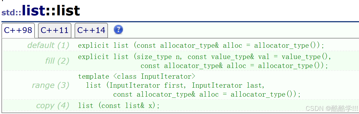 当然C++11中也提供了一个initializer_list的构造方法, 这个构造方法也比较常用