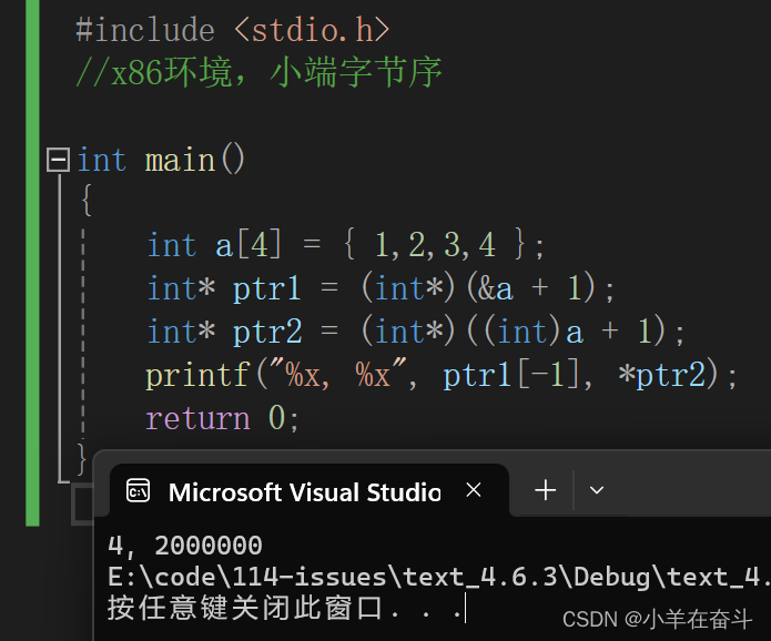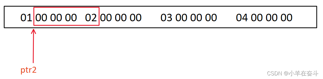 我们又知道小端字节序是反着存的,所以ptr2指向的数值就是02 00 00 00,打印出来就是2000000。
