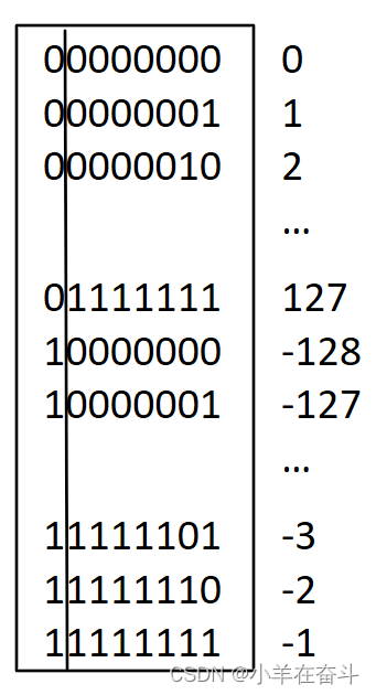 我们很早就知道,(signed)char类型的取值范围是:-128~127 ,但是为什么是这个范围并没有解释。char类型占一个字节也就是8个比特位,最高位当做符号位来看待,就剩下了7位存0、1值。