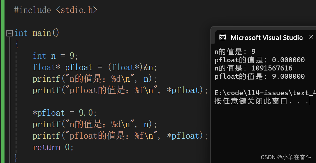 如果用我们学到的整数存储的方法来解读上面的代码,打印出来的结果应该就是9、9.000000、9、9.000000。
