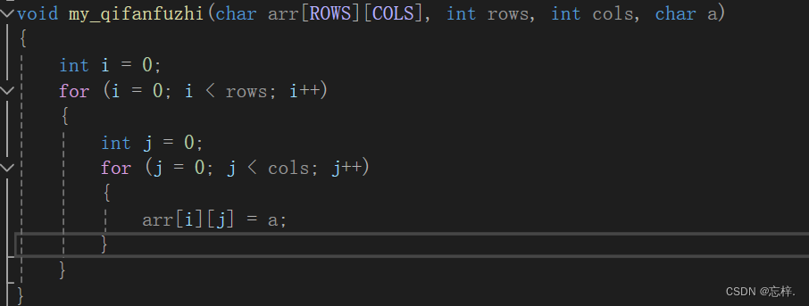 void my_qifanfuzhi(char arr[ROWS][COLS], int rows, int cols, char a)