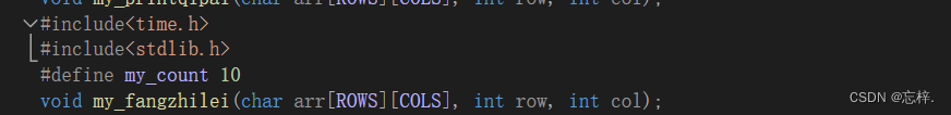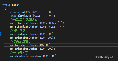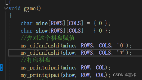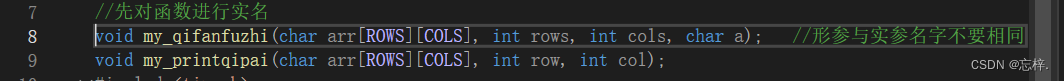 void my_qifanfuzhi(char arr[ROWS][COLS], int rows, int cols, char a); //形参与实参名字不要相同