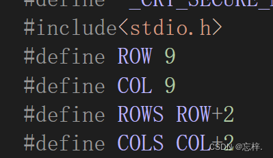 对于棋盘我们可以用二维字符数组来进行实现,为了让代码更灵活一点,我们可以采用define关键字来进行行和列的设置(这为后面高级版打下了基础):