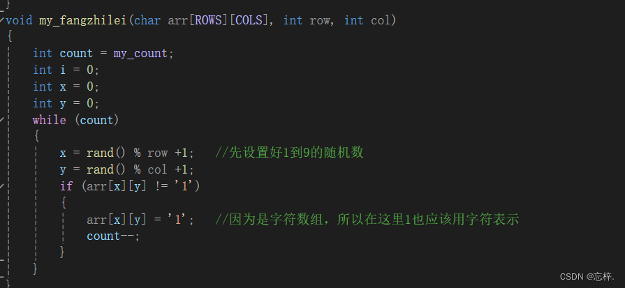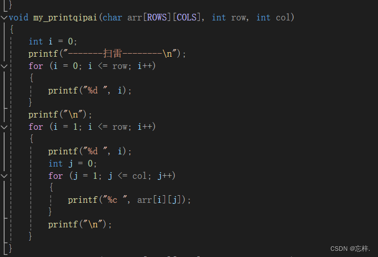 void my_fangzhilei(char arr[ROWS][COLS], int row, int col)