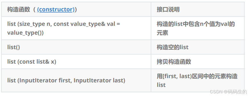 std::list<int> list2(5); // 创建包含 5 个默认元素的 list,值为 0