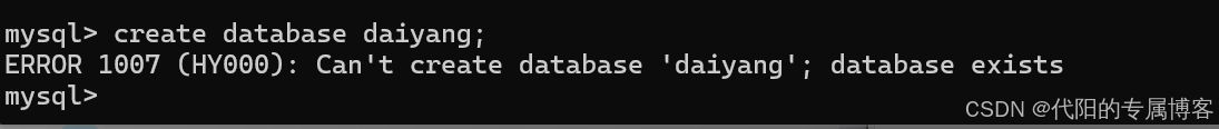 我们再次创建就会出错,因为苦库中已经有一个代名为daiyang的库了