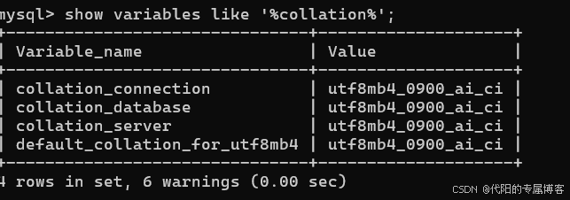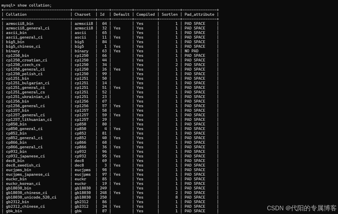 show collation;MySQL8.0默认的排序规则是 utf8mb4_0900_ai_ci , MySQL5.7默认排序规则是 utf8mb4_general_ci