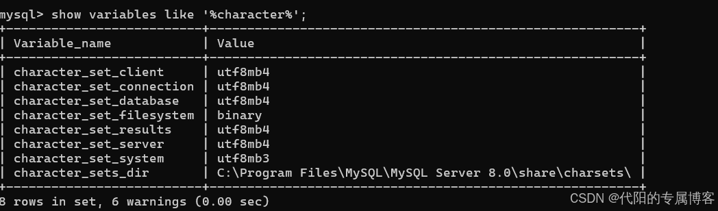 show variables like '%character%';