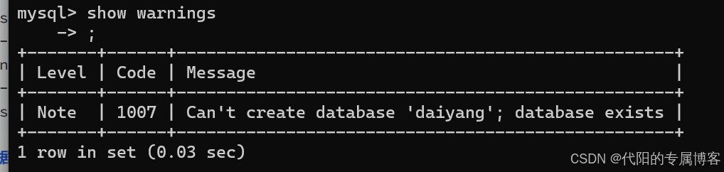 show warnings提示名为daiyang的库已经存在了