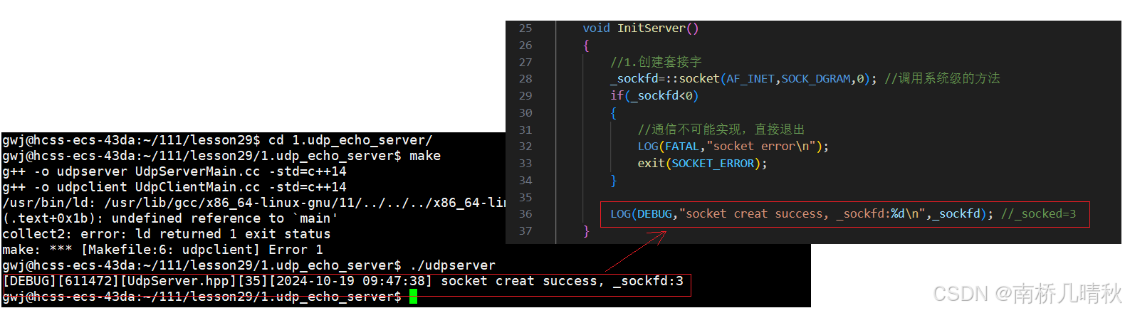 任何一个UDP服务通信中,都需要有一个int sockfd的文件描述符,按照系统编程中所说,这里打印出来的文件描述符应该是3,因为0,1,2已经被占用了。