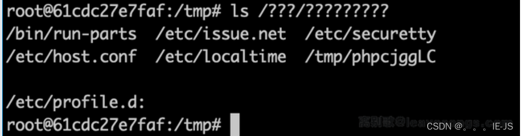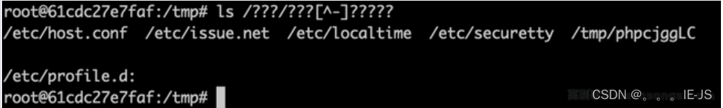 第二个难题接踵而至,执行 . /tmp/phpXXXXXX ,也是有字母的。此时就可以用到 Linux 下的 glob 通配符: