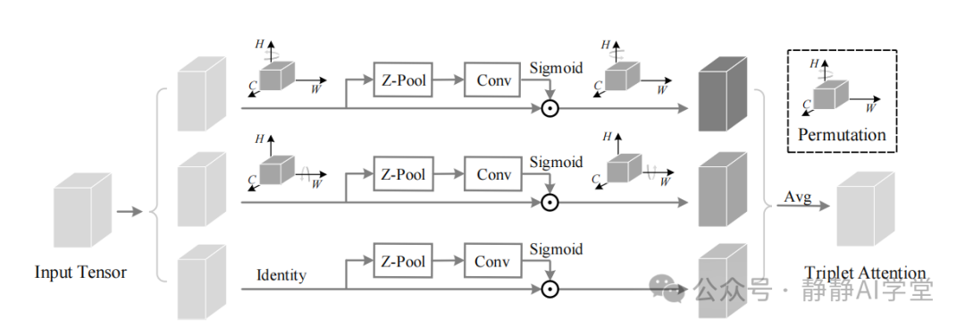 三元组注意力机制是一种注意力机制,旨在有效地处理跨维度的交互。它由三个分支组成,每个分支负责捕捉输入中空间维度和通道维度之间的跨维度交互特征。具体来说,对于一个输入张量
