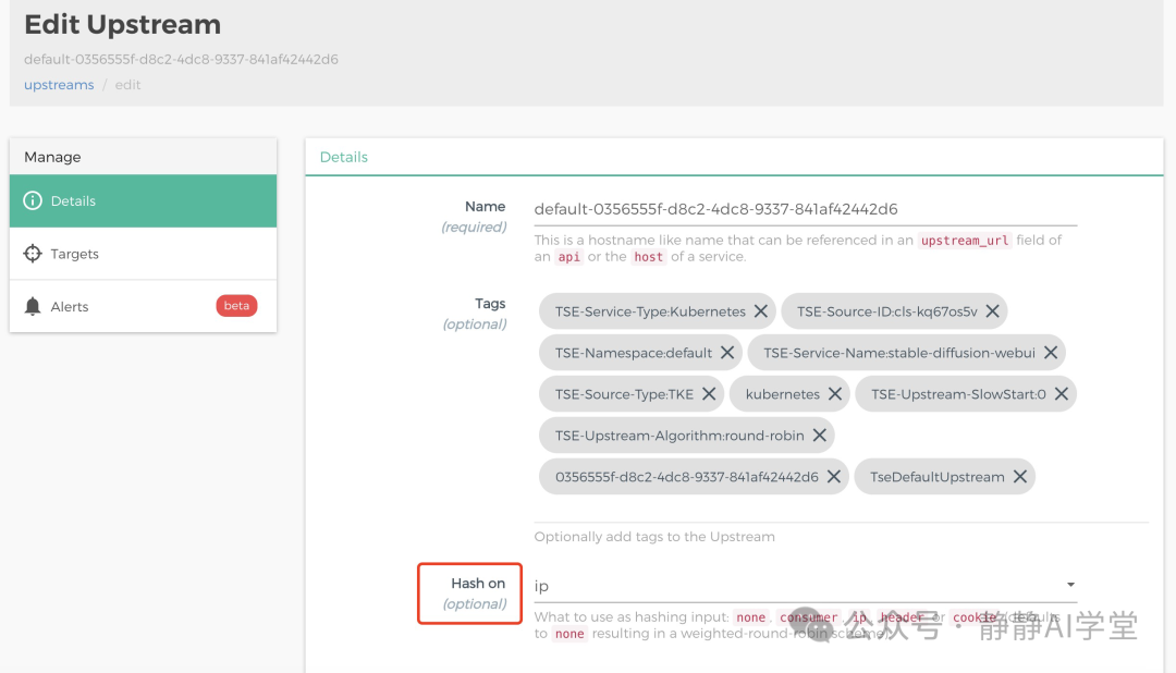在 HASH ON 下拉框里,选择 IP,完成基于客户端 IP 的会话保持配置。
