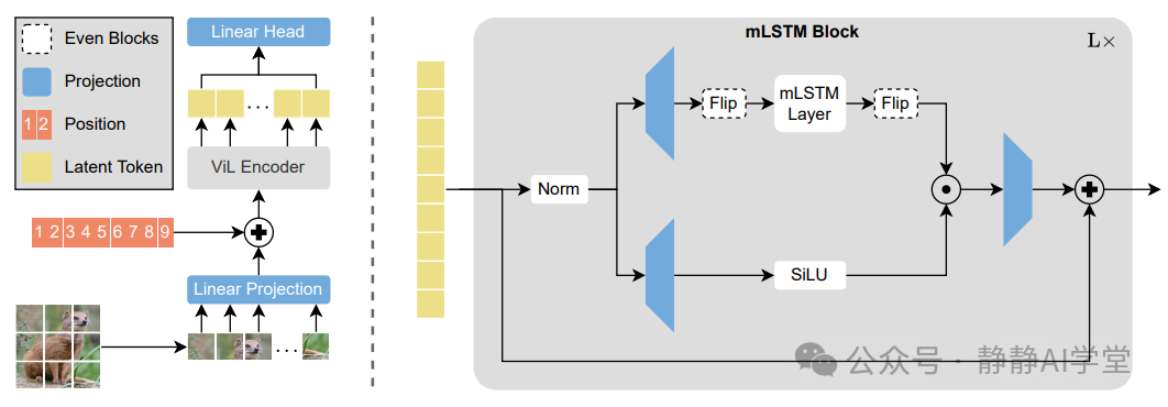 论文链接:https://arxiv.org/pdf/2406.04303 Vision-LSTM(ViL)架构的核心是xLSTM块。每个xLSTM块都包含一个输入门、一个遗忘门、一个输出门和一个内部记忆单元。与传统的LSTM相比,xLSTM引入了指数门控机制,使得模型能够更好地处理长序列数据。同时,xLSTM采用可并行化的矩阵内存结构,提高了模型的计算效率。