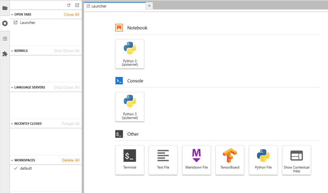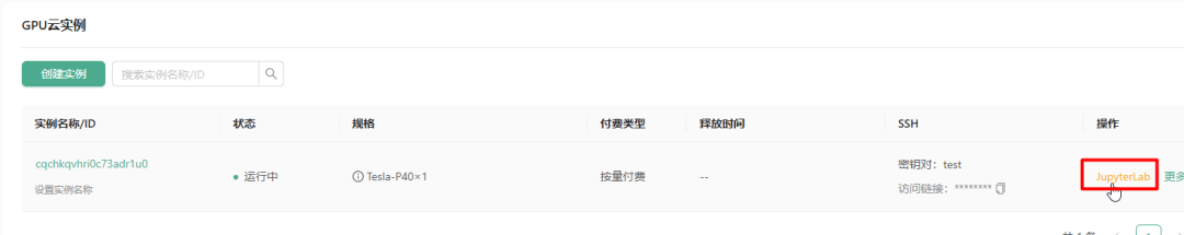 创建好后,点击 JupyterLab 进入控制台。