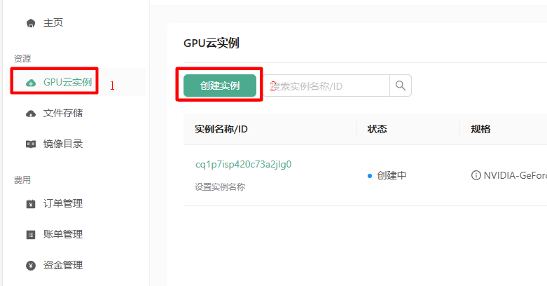 点击GPU云实例,然后再点击创建实例,进入创建实例的页面。