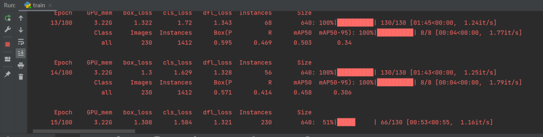 然后就可以看是训练了,点击run开始运行train.py。