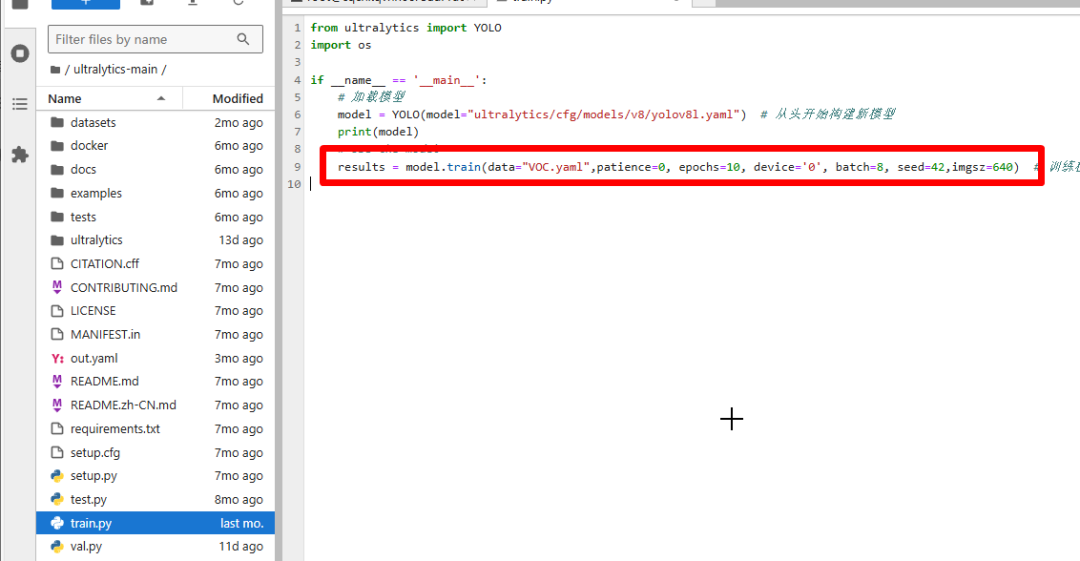 打开train.py后就可以修改train.py里面的参数了。