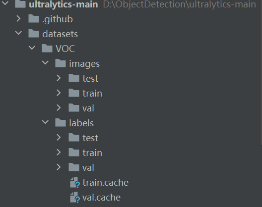 下载到本地后解压,将生成的yolo数据集放到datasets(需要创建datasets文件夹)文件夹下面,如下图: