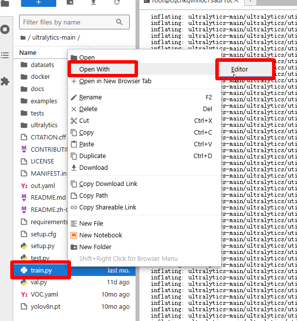 点击train.py,Open With→Editor。