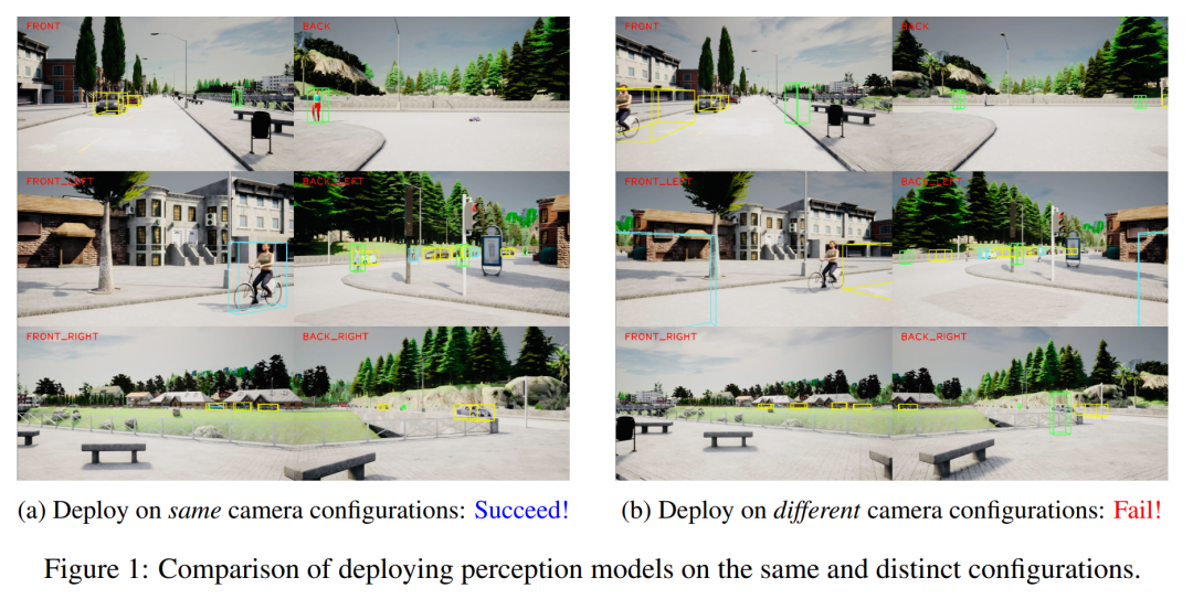 - 跨相机配置的泛化问题:自动驾驶模型通常依赖于校准良好的传感器设置,而不同车辆或平台之间的相机参数(包括内在和外在参数)的微小变化都可能导致性能显著下降。这使得感知模型难以在不同车辆之间转移,需要针对每个车辆重新训练,消耗大量计算资源。