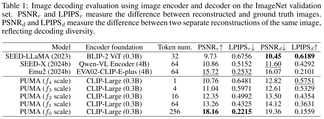 - 尽管PUMA的参数数量相对较少,但其在多个指标上展现出与其他模型竞争甚至更优的性能。