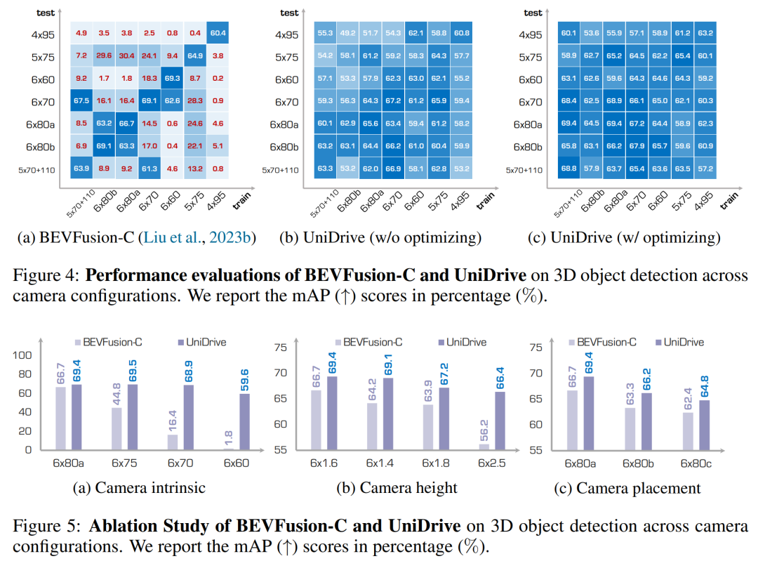 - 展示了UniDrive框架在处理这些变化时的有效性,特别是在处理不同相机内在参数时的性能提升。