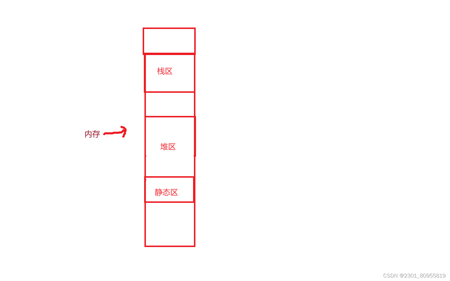 为了进一步了解变量在内存中的存储形式,接下来我们引出三个内存区域:栈区、堆区和静态区。