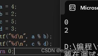 /表示除法,也是双目操作符,但是它的计算方式略有不同。如果说两个操作数均为整形,则得到的结果也为整形(实际可能算出小数,结果向下取整)。