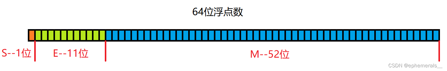 对于64位的浮点数,最高位存储S,接下来的11位存储E,剩下的52位存储M。
