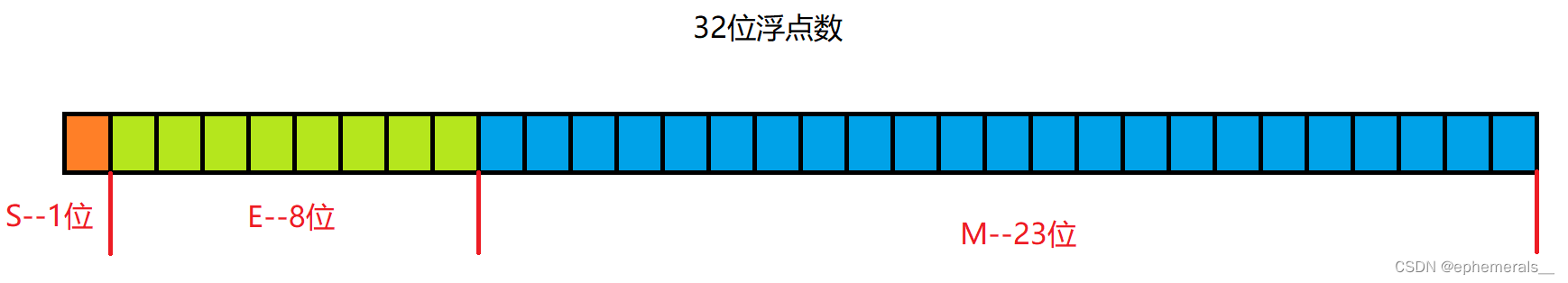 对于32位的浮点数,最高位存储S,接下来的8位存储E,剩下的23位存储M。