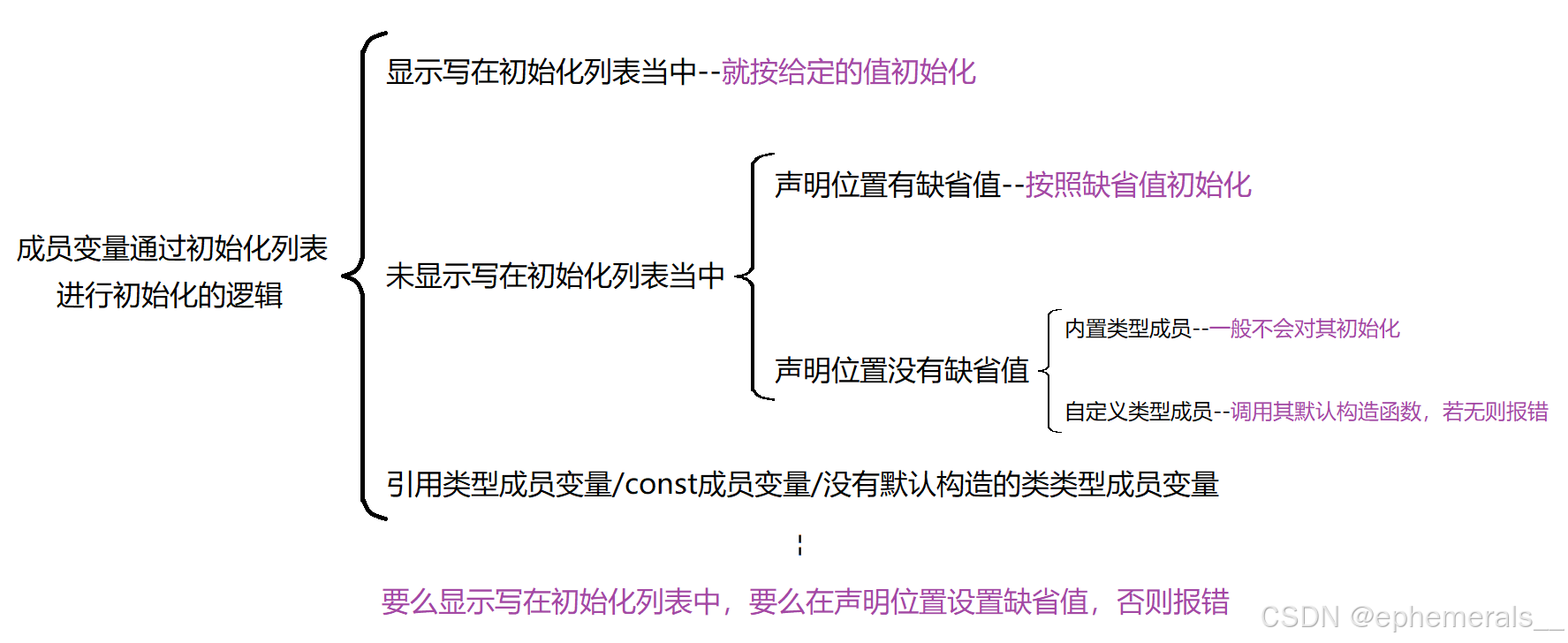 接下来,我们总结一下成员变量通过初始化列表进行初始化的逻辑: