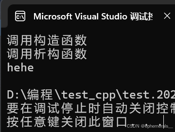 可以看到,程序在打印hehe之前,就已经调用了析构函数,意味着匿名对象已经被销毁。