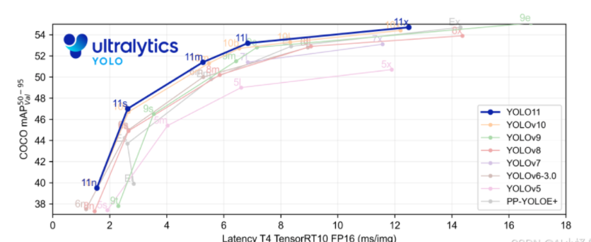Ultralytics YOLO11是一款尖端的、最先进的模型,它在之前YOLO版本成功的基础上进行了构建,并引入了新功能和改进,以进一步提升性能和灵活性。YOLO11设计快速、准确且易于使用,使其成为各种物体检测和跟踪、实例分割、图像分类以及姿态估计任务的绝佳选择。